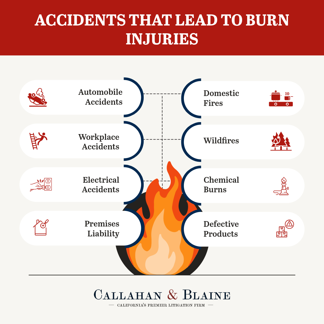 Burn injuries can result from a wide array of accidents, each presenting unique challenges in terms of seeking damages and navigating the legal process. The following are the most common types of accidents that lead to burn injury claims: